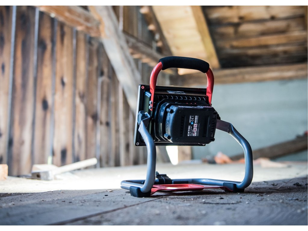 Jednou z hlavních výhod tohoto reflektoru je jeho napájení pomocí akumulátoru SHARE20V, který umožňuje nepřetržitý provoz světla. Stačí vložit nabitý akumulátor a pokračovat v práci. Tento akumulátor je kompatibilní se všemi typy nářadí řady EXTOL SHARE20V.
