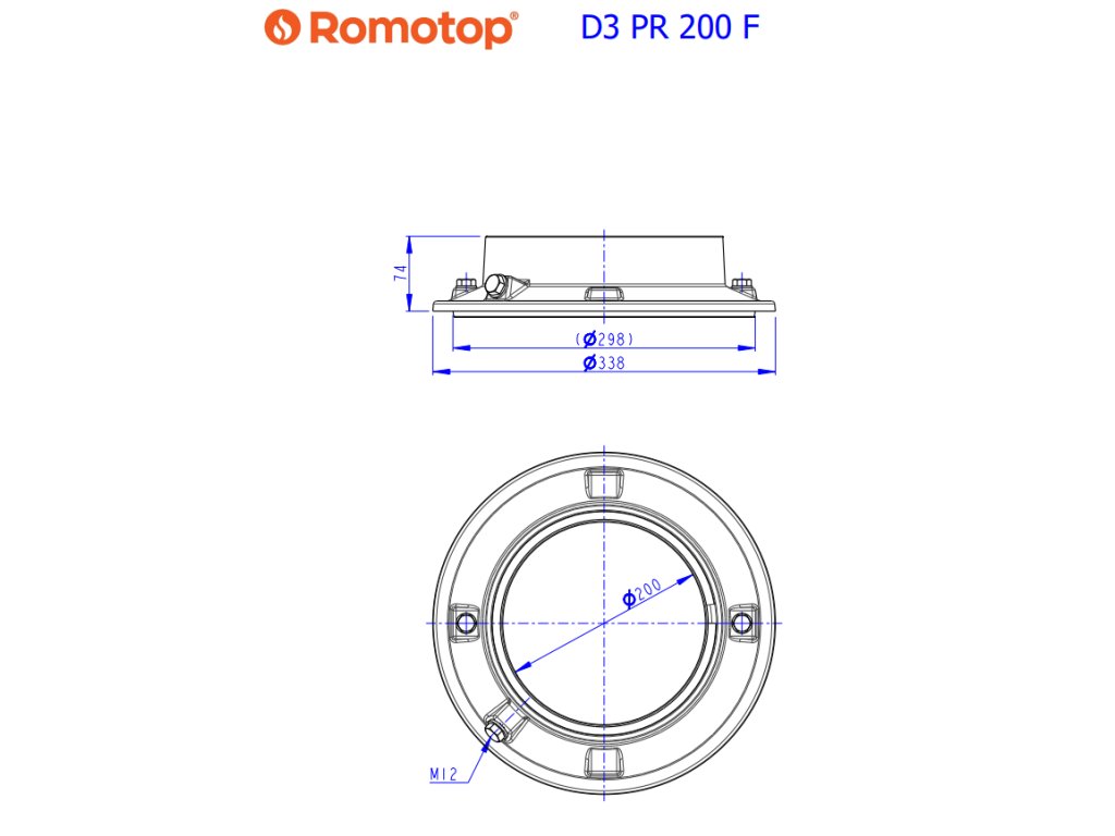 ROMOTOP příruba Ø200 mm pro DYNAMIC je důležitým konstrukčním prvkem pro bezpečné, trvalé a technicky správné připojení krbové vložky ke komínovému systému. Vhodná pro širokou řadu modelů a připravená pro moderní technologie včetně připojení čidel.
