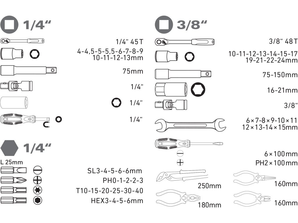 | ráčna: | 1/4"(45T),3/8"(45T) (CrV) |