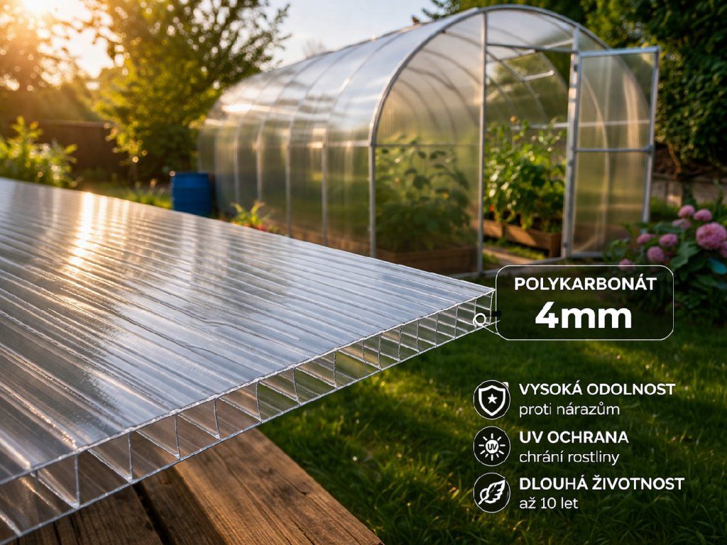 | Zasklení | Dutinkový polykarbonát TITANPLAST-T 4 mm |
