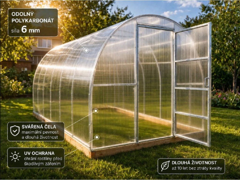 - Pěstitelé plodové zeleniny — rajčata, okurky, papriky ocení teplotní stabilitu 6mm polykarbonátu a tři způsoby větrání. Pro plné automatizování přidejte automatický otvírač.