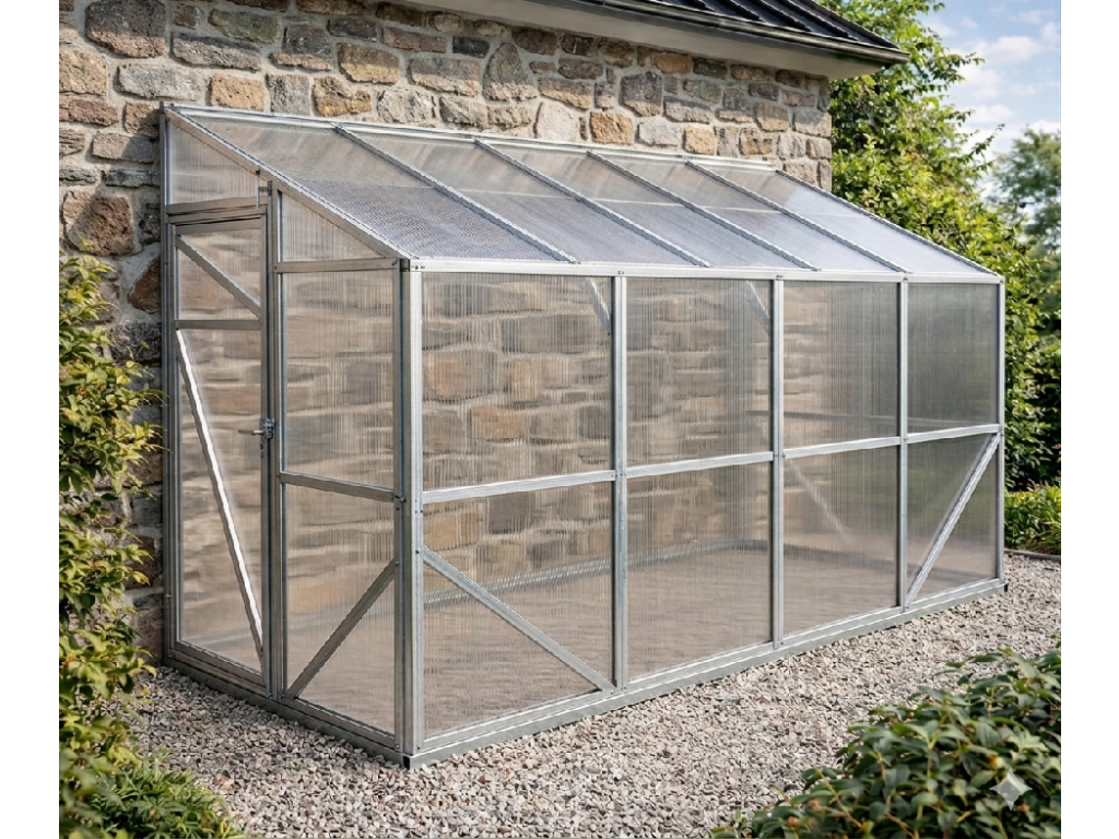 Přístěnný skleník využívá teplo ze stěny domu — vyšší noční teplota, delší sezóna. Zabírá méně místa na zahradě. Nevýhoda: omezená orientace (závisí na poloze zdi). Volně stojící skleníky mají osvětlení ze všech stran — podívejte se na GARDENTEC Classic T nebo COMFORT 2×4 m.