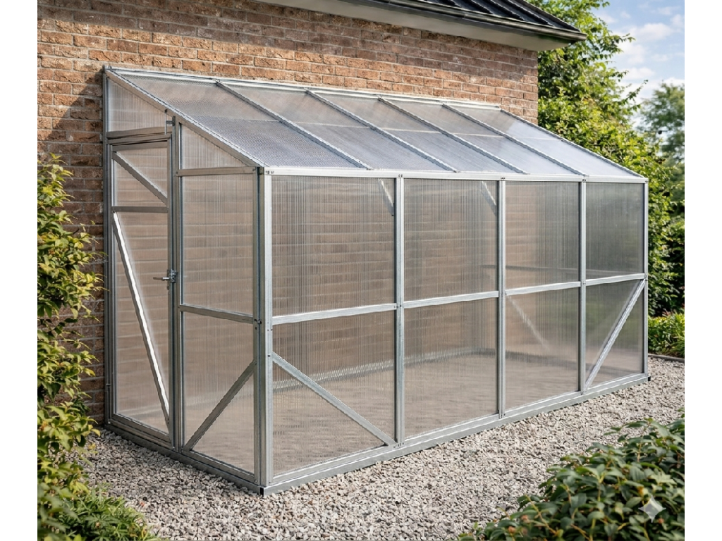 Přístěnný skleník využívá teplo ze stěny domu — vyšší noční teplota, delší sezóna. Zabírá méně místa na zahradě. Nevýhoda: omezená orientace (závisí na poloze zdi). Volně stojící skleníky mají osvětlení ze všech stran — podívejte se na GARDENTEC Classic T nebo COMFORT 2×4 m.