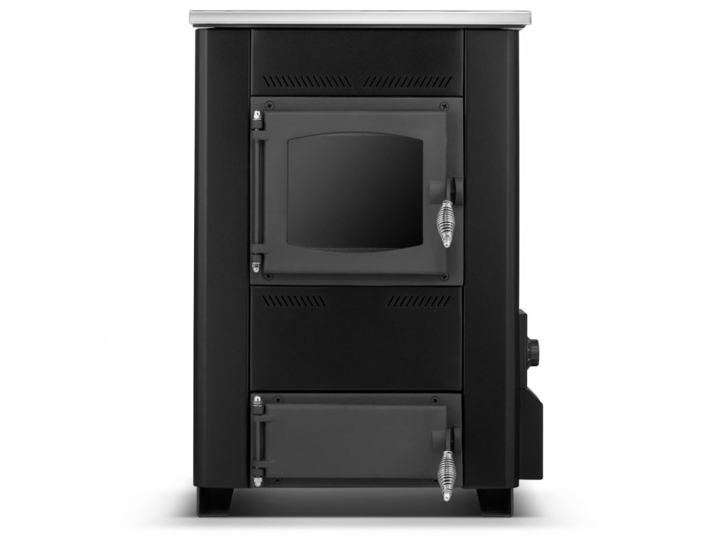 Teplovodní kotel pro centrální vytápění, prostorná varná deska pro vaření a prosklené ohniště s atmosférou krbu – vše v jednom kompaktním spotřebiči. Ideální pro domy a chalupy, kde má topidlo plnit více funkcí najednou.