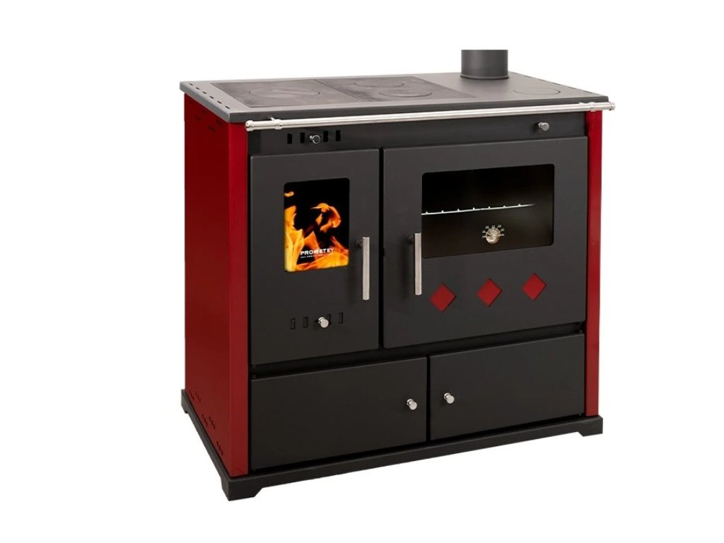 Moderní vzhled sporáku s boky v provedení bordó je skvělým spotřebičem pro váš dům, byt nebo chalupu.