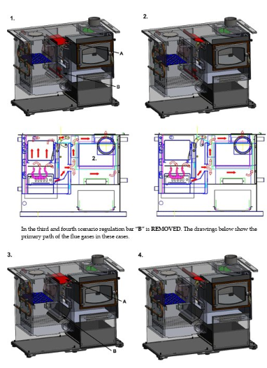 Znamená to, že kouřovod o průměru 150 mm lze napojit buď shora na pravé straně sporáku, nebo ze zadní stěny na pravé straně. Tato varianta je ideální tam, kde je komín nebo kouřovod vpravo od spotřebiče a je potřeba flexibilita při vedení spalin.