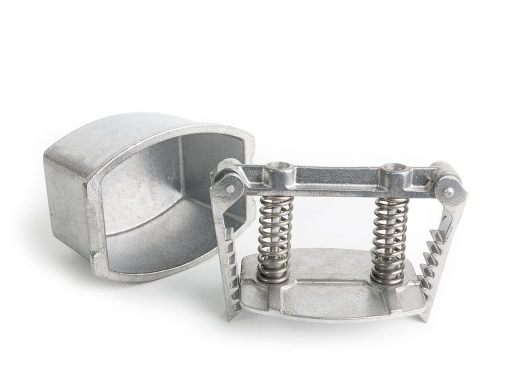 Tento uzenářský nástroj je ideální pro výrobu domácí dušené šunky, debrecínek a podobných produktů. Je vyroben z kvalitní a silné slitiny hliníku, což zaručuje jeho dlouhou životnost. Horní část tvoří víčko s pružinou, která během vaření stlačuje maso, aby se dobře spojilo a vytvořilo kompaktní celek.