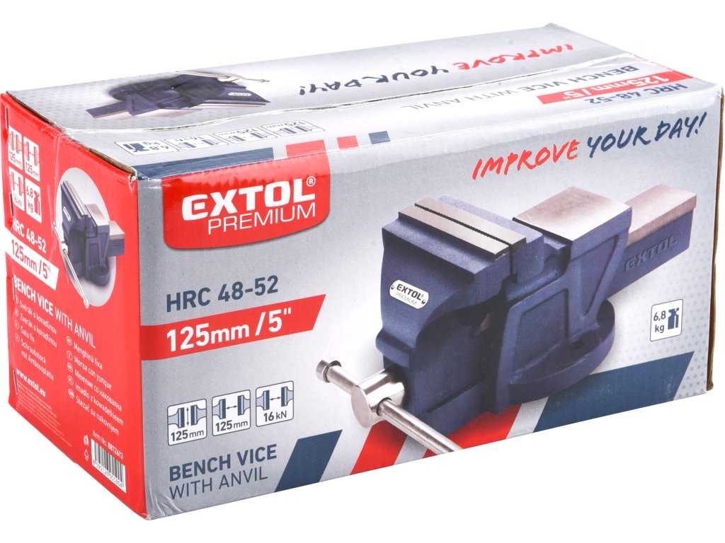 info: S kovadlinou, čelisti tvrzené na HRC 48-52.