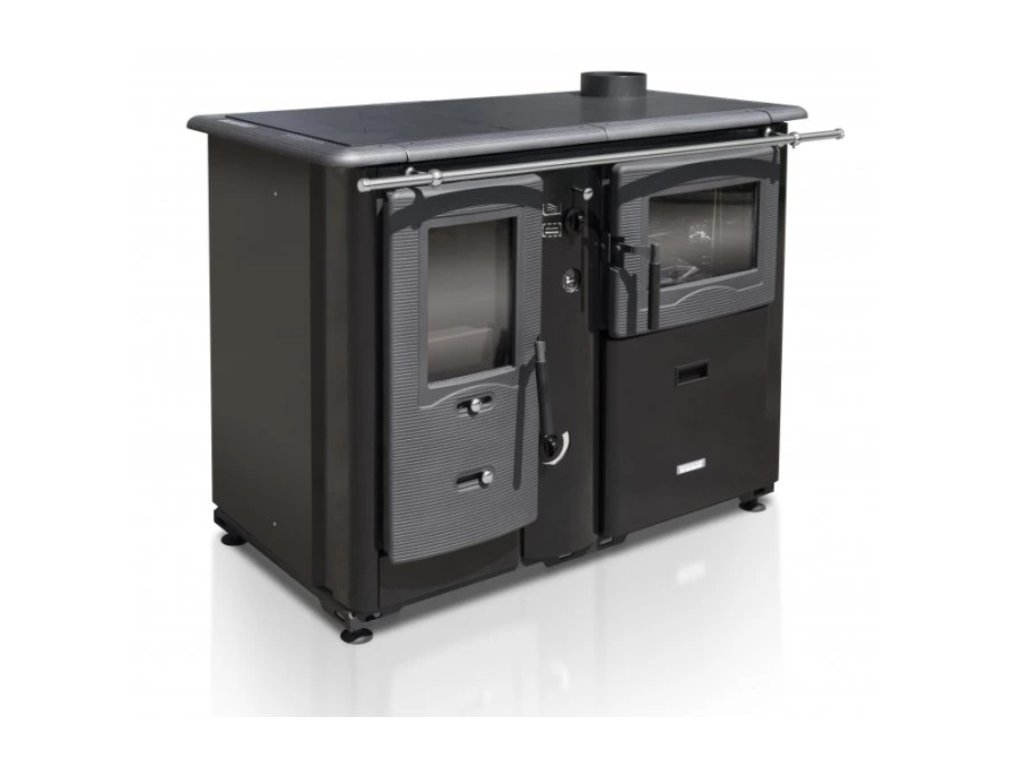 Sporák má integrovanou troubu (350 × 450 × 230 mm) s roštem a pekáčem, takže můžete bez problémů péct, zapékat nebo ohřívat pokrmy při využití tepla z topení. Provozní parametry (max. tlak 3 bar, max. teplota vody 90 °C) odpovídají běžným požadavkům moderních teplovodních systémů, takže jej lze snadno začlenit do většiny standardních otopných soustav v rodinných domech.