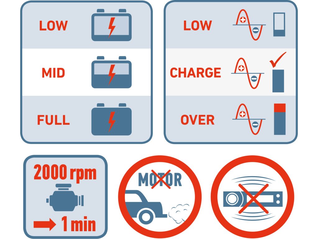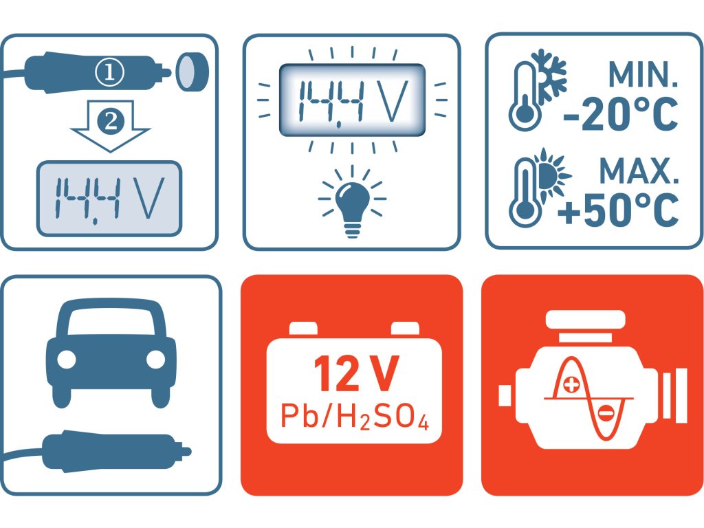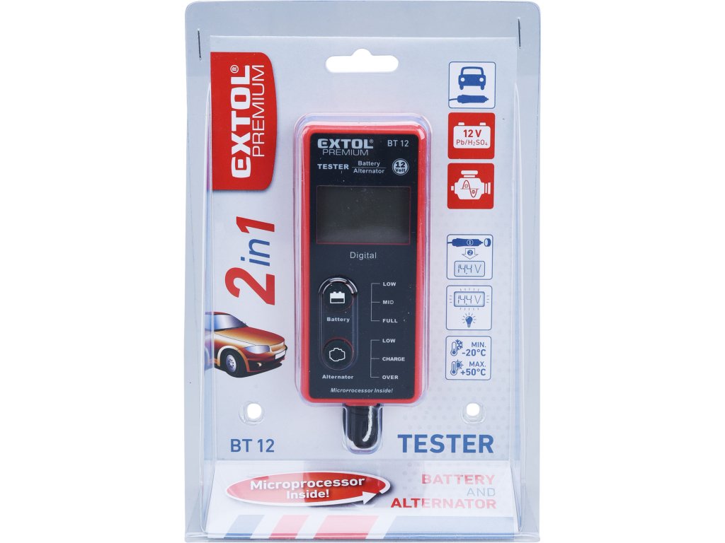 doplňující parametr: | 2funkce: měří hodnotu napětí baterie a stav alternátoru, LCD displej s podsvícením, k provozu nejsou nutné baterie |