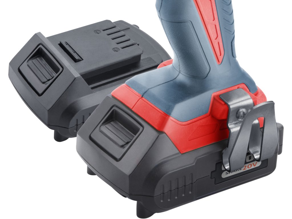Dva akumulátory: 20V Li-Ion s kapacitou 2000 mAh poskytují dlouhou výdrž a flexibilitu.