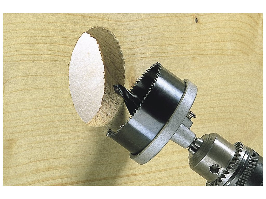 Děrovka pro dřevo, sádrokartonové desky, stavební desky, provedení: pilové listy z wolframové oceli, kovové tělo, včetně: 1 x centrovací vrták, průměr 8 mm, 7 x rychlovýměnné pilové kotouče.