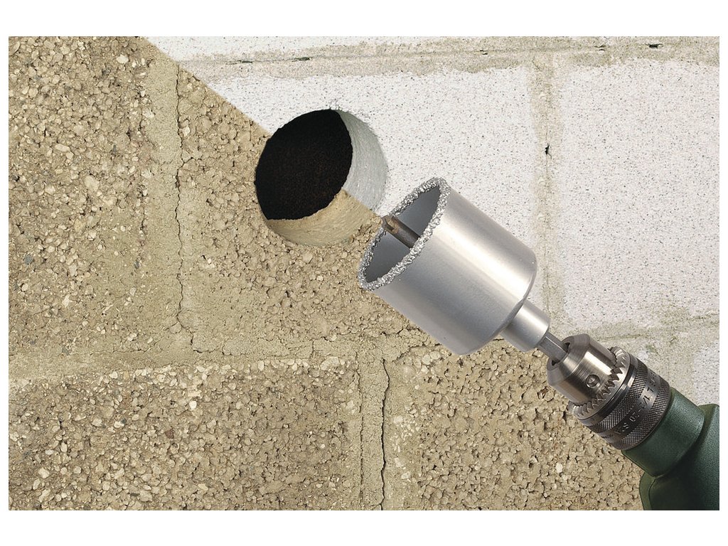 Děrovka pro veškeré instalační práce (zásuvky, rozvaděče, trubky), pro zdi, cihly, lehké cihly, sádrokartonové desky, dlažby, přímo použitelná - žádné zvláštní upínací trny nejsou potřeba, určeno také pro hluboké otvory, materiál: HM - sypaná, včetně: 1 x centrovací vrták HM, průměr 8 mm, se šestihrannou stopkou, průměr 83 mm, hloubka řezu 55 mm.
