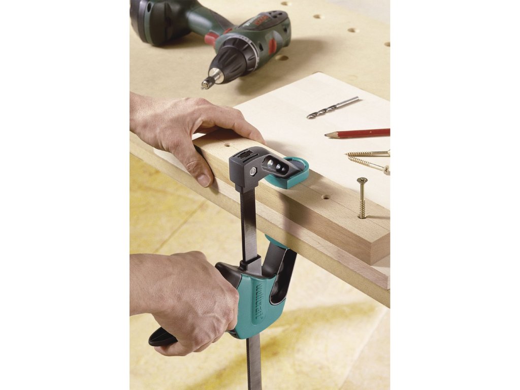 Jednoduché ovládání se základními funkcemi upnutí a uvolnění, upínací síla až do 90 kg, díky optimalizované ergonomii držadla padne svěrka v každé situaci do ruky, snadná přestavba k rozpínání, speciálně tvrzené ocelové kolejnice a plast vyztužený skleněnými vlákny, vyložení: 75 mm, upínací rozsah: 500 mm, oblast roztažení: 180 - 740 mm.