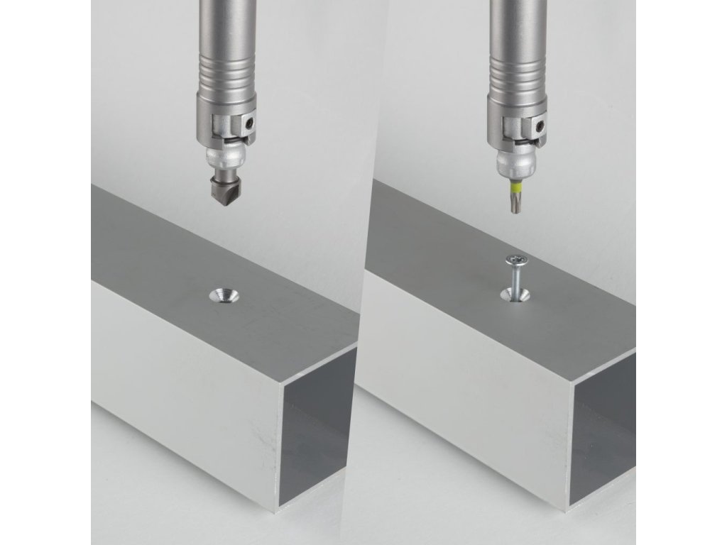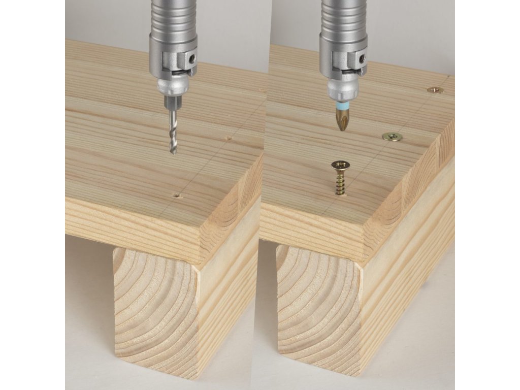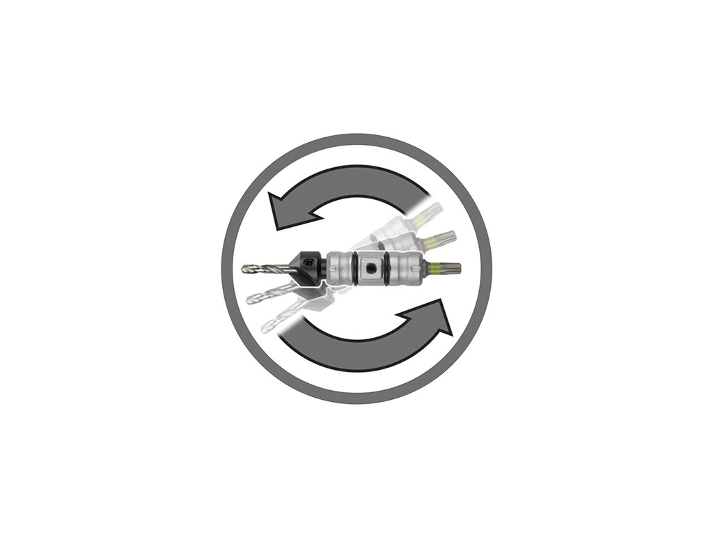 Tato sada obsahuje dvojitý výměnný držák Flipbit s šestihrannou stopkou 1/4" (6,35 mm). Je určen k osazení různých nástrojů a příslušenství, což z něj činí velmi univerzální nástroj.