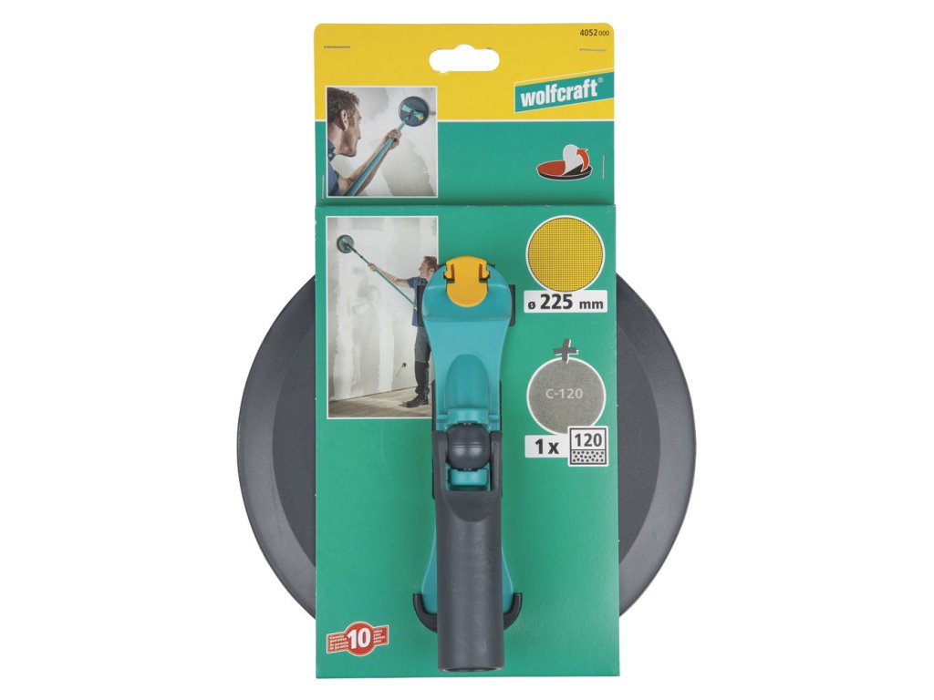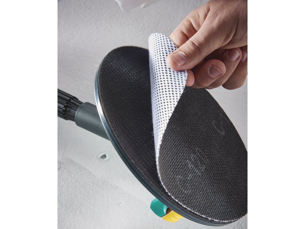 kruhový brousek pro samodržná mřížková plátna k efektivnímu broušení sádrokartonu na stěnách a stropu umožňuje bezprašnou práci s teleskopickou tyčí jako volitelným příslušenstvím stabilní na povrchu pro nepřetržité rychlé broušení nepřeklopí se rychlá výměna brusného prostředku díky upínací funkci včetně: 1 x samodržné mřížková plátna karbid křemíku, zrno 120 1 x stropní držák balení: přířez lepenky EAN: 4006885405202