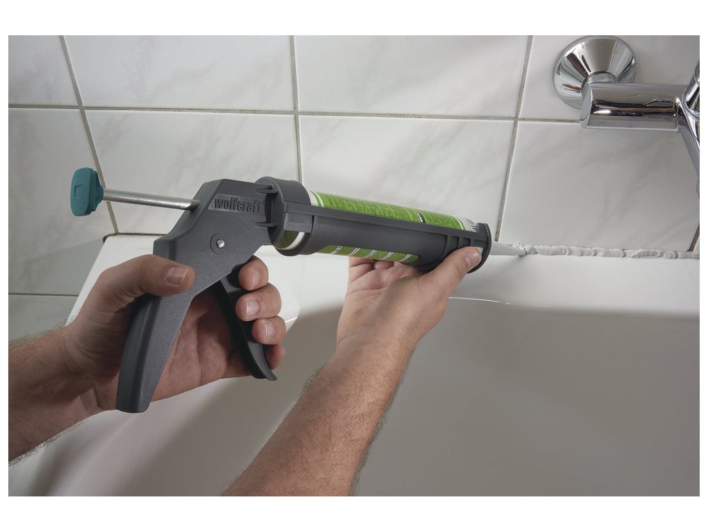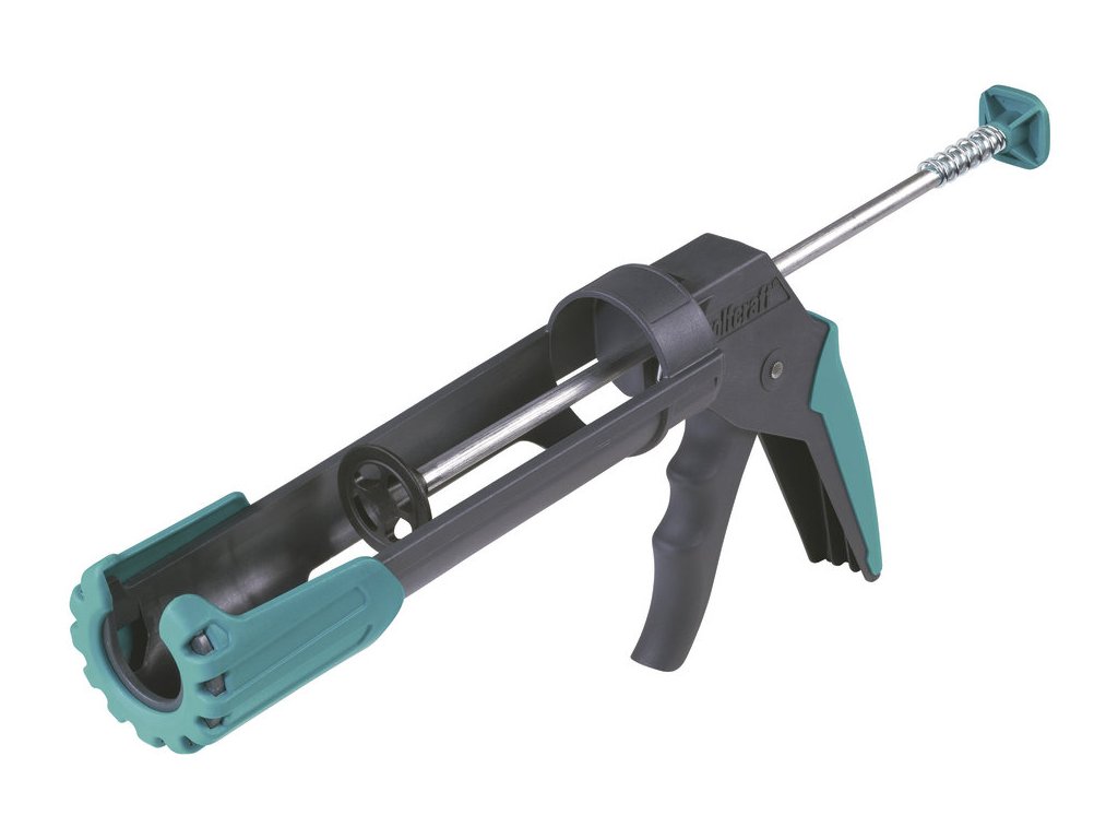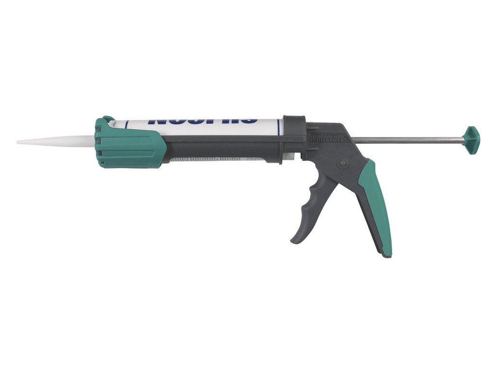 Vhodné pro všechny kartuše 310 ml (průměr 50 × 225 mm), pro silikon, akryl, s funkcí automatického zastavení odkapávání – brání vytékání materiálu, ergonomický tvar rukojeti pro práci bez únavy, otočné pouzdro rukojeti, snadná výměna kartuší, robustní provedení z plastu zesíleného skelným vláknem, rozměry výrobku: 350 x 175 x 65 mm, hmotnost: 0,366 kg. ELN1163 EAN 4006885435209