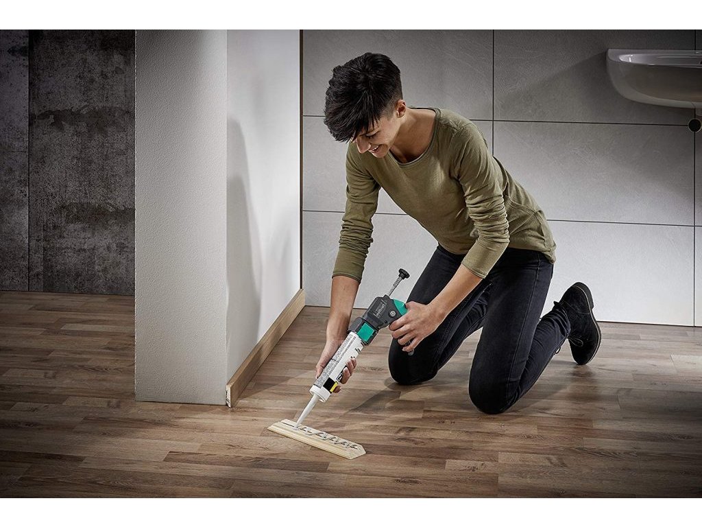 Ke zpracování téměř všech materiálů v 310 ml kartuších jako silikon a akryl,robustní provedení z plastu zesíleného skelným vláknem, ergonomický tvar rukojeti pro práci bez únavy, rychlá a jednoduchá výměna kartuše díky nově vyvinuté aretaci kartuše, s funkcí automatického zastavení odkapávání – brání vytékání materiálu, Rozměry výrobku: 360 x 195 x 90 mm Hmotnost: 0,465 kg. Max tlak: 160 Kg Otáčení kartuše: 360° Použití: Silikon, Akryl, Lepidla EAN 4006885435704
