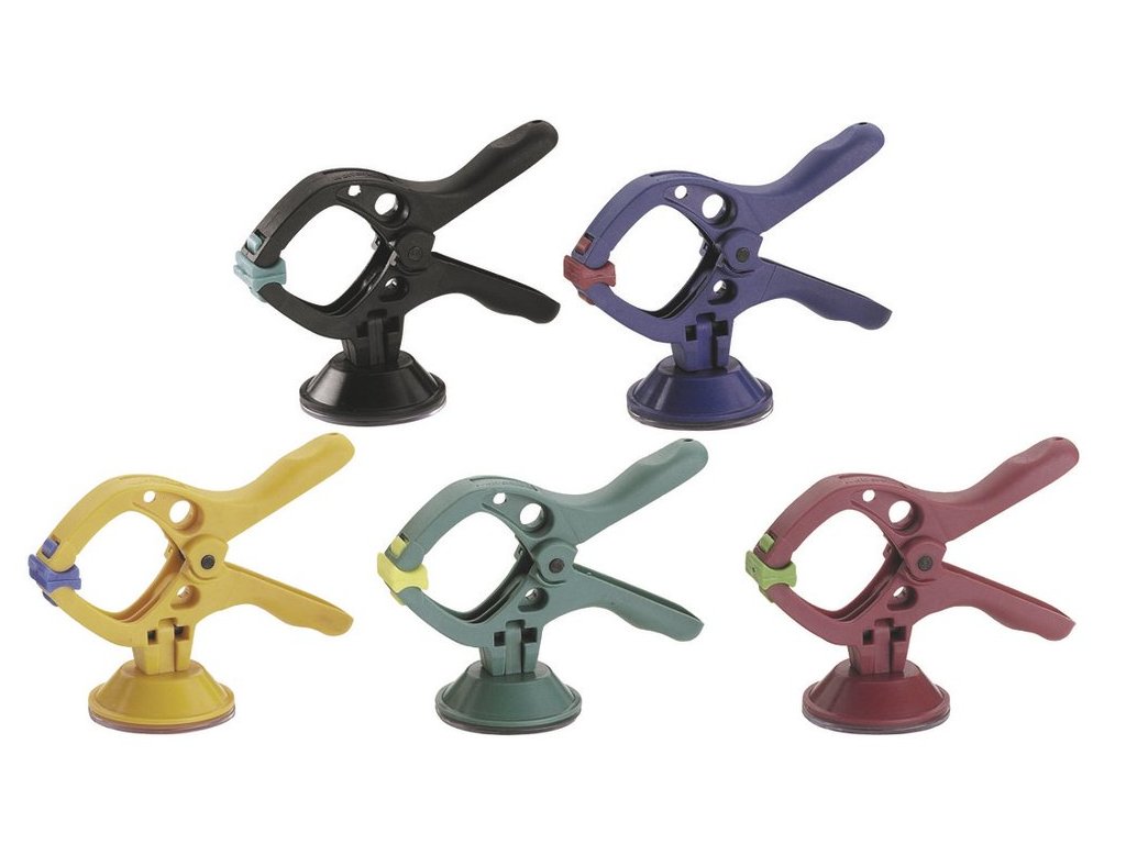 Svěrka je použitelná jako dočasná možnost připevnění na všechny hladké plochy, použitlné pro domácnost, určeno pro hobby, zahradu, auto a volný čas (kempování), bezotiskové upnutí - při uvolnění nezůstávají žádné stopy po upnutí na horní ploše, pohyblivé upínací čelisti se přizpůsobí obrobku, jednoduché upnutí na hladkých plochách díky vahadlovému mechanismu, provedení: s přísavkou, v různých barvách, upínací rozsah 20 mm, přídržná síla do 250 g.