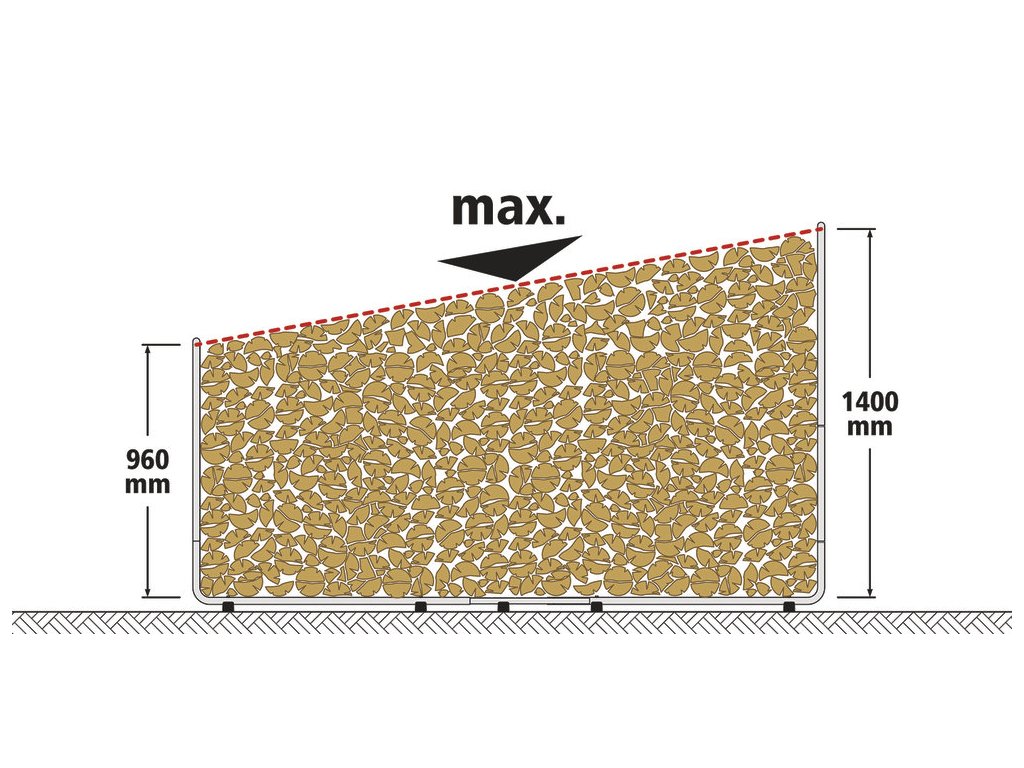 Wolfcraft MODULAR XXL je ideální pro venkovní prostory a lze jej naložit až do výšky 1,4 m nebo šířky 3,2 m. Tato pomůcka je schopna skladovat až 1,6 m³ dřeva. Rozměry rozložené pomůcky jsou 1.766 - 3.241 x 1.036 - 1.460 x 256 mm a hmotnost je 8 kg.