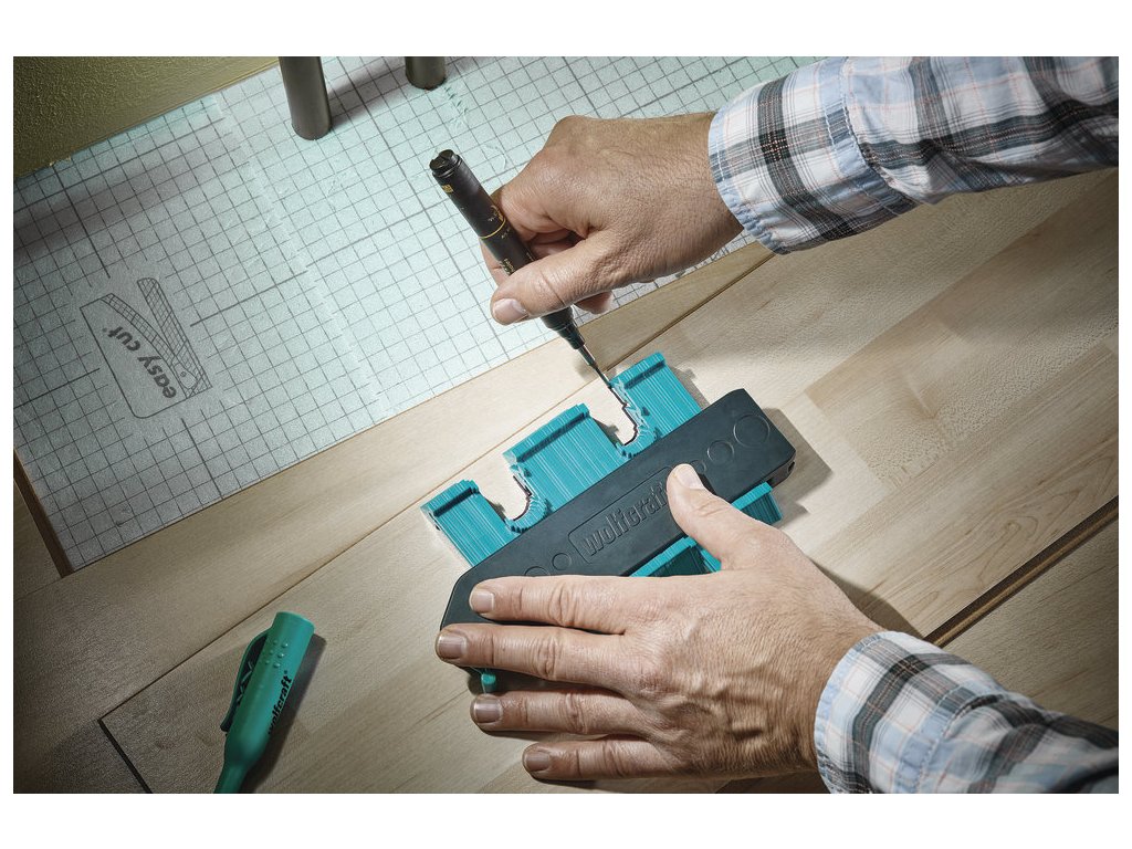 Wolfcraft obrysová šablona 6949000 EAN: 4006885694903 Obrysovač umožňuje jednoduché určení a přenesení průběhu řezu na zpracovávaný materiál. přenos rohů a kontur - snadno a přesně ideální pro přesné přizpůsobení laminátu např. u trubek topení aretační páčka pro upevnění snímacího zařízení - bez posunu kontur robustní plastové provedení šířka kontur max. 130 mm, hloubka kontur max. 30 mm EAN: 4006885694903Doplňkové parametry