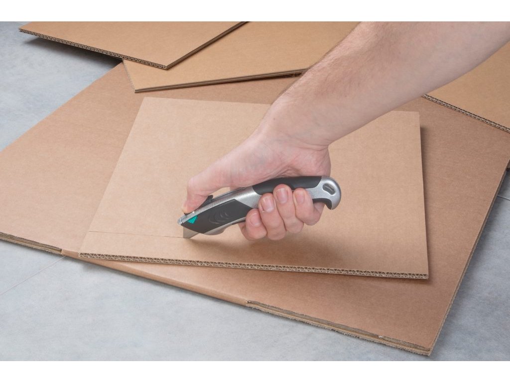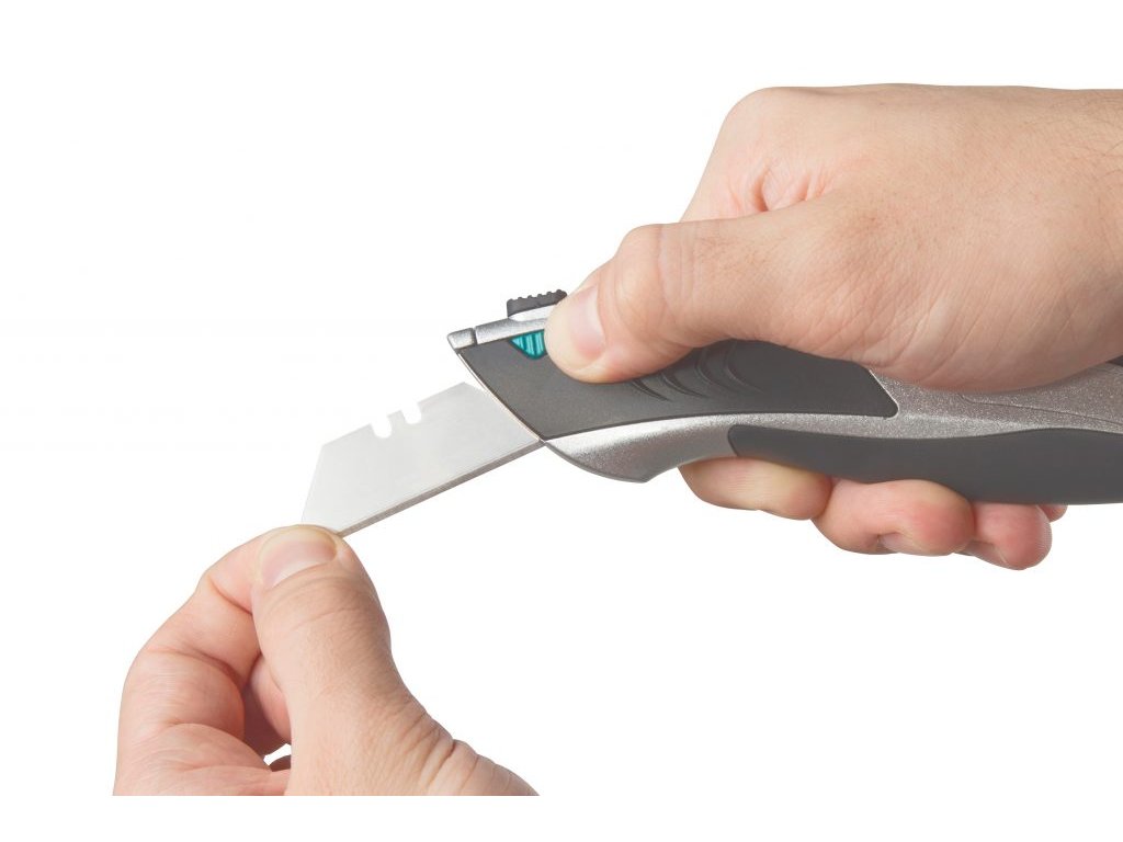 Profesionální nůž pro nepřetržitý provoz • automatické vyměňování čepelí během několika sekund díky funkci automatického ukládání šetří čas v nepřetržitém provozu • ergonomická měkká zóna pomáhá oddálit pracovní únavu • robustní kovové tělo s dlouhou životností, speciálně určené pro profesionální použití • bezpečné a praktické uložení výměnných čepelí v integrovaném zásobníku čepelí • šířka čepele 61 mm • včetně: 6 x náhradní čepel v zásobníku