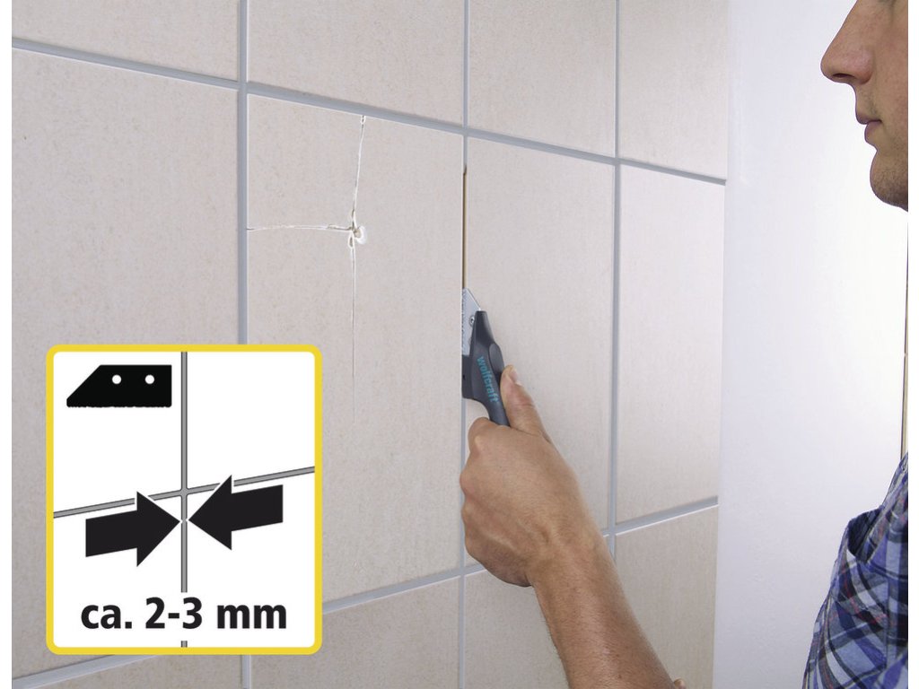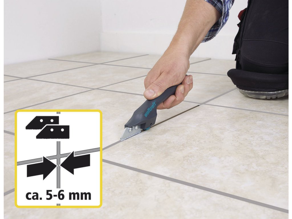 Praktický pomocník při práci s obklady od značky Wolfcraft na spáry mezi dlaždicemi (maltové spáry) 2,5 - 6 mm podle šířky spáry se použije jedna nebo dvě čepele s vrstvou z tvrdokovu integrované kolečko stabilizuje vedení v drážce a snižuje riziko poškození sousedních dlaždic lehká výměna čepele HM Výrobce/Dovozce: WOLFCRAFT Kód produktu:ELN0014 EAN 4006885557010
