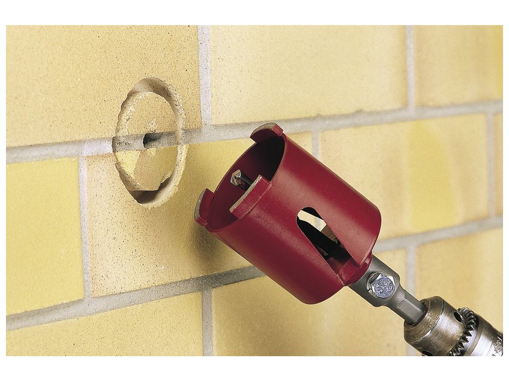 Diamantová dutá vrtací korunka 7957000 je nástroj určený k usazování zásuvek, krabic rozvaděčů a stěnových krabic. Je ideální pro práci na zdech, kde umožňuje rychlé a jemné řezy.