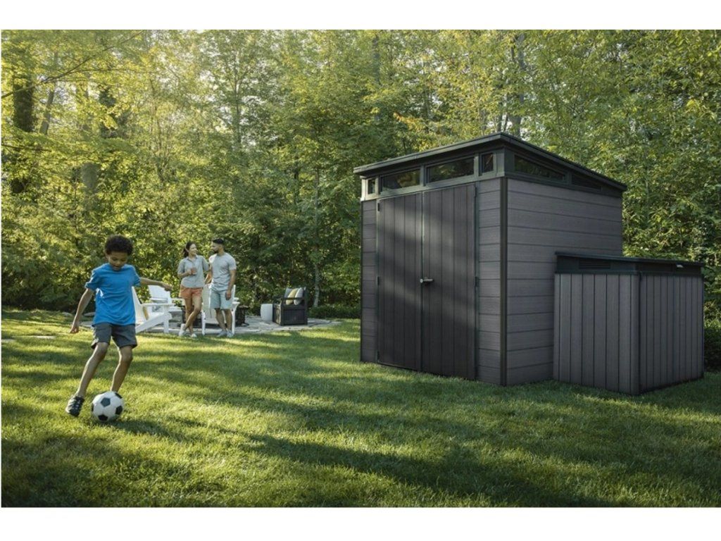 Materiál EVOTECH™ je navržen pro maximální barevnou stálost šedých a antracitových tónů. Na vercajk-shop.cz nabízíme kompletní sortiment zahradních domků Keter, zahradní boxy i montáž. Zavolejte na 601 282 179.