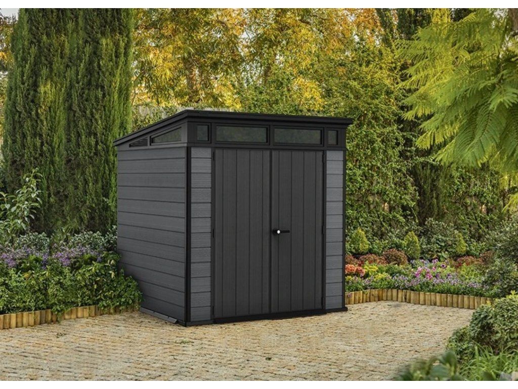 Zahradní domek Keter Cortina 7×7 šedý — moderní šedý design, EVOTECH™ a nulová údržba