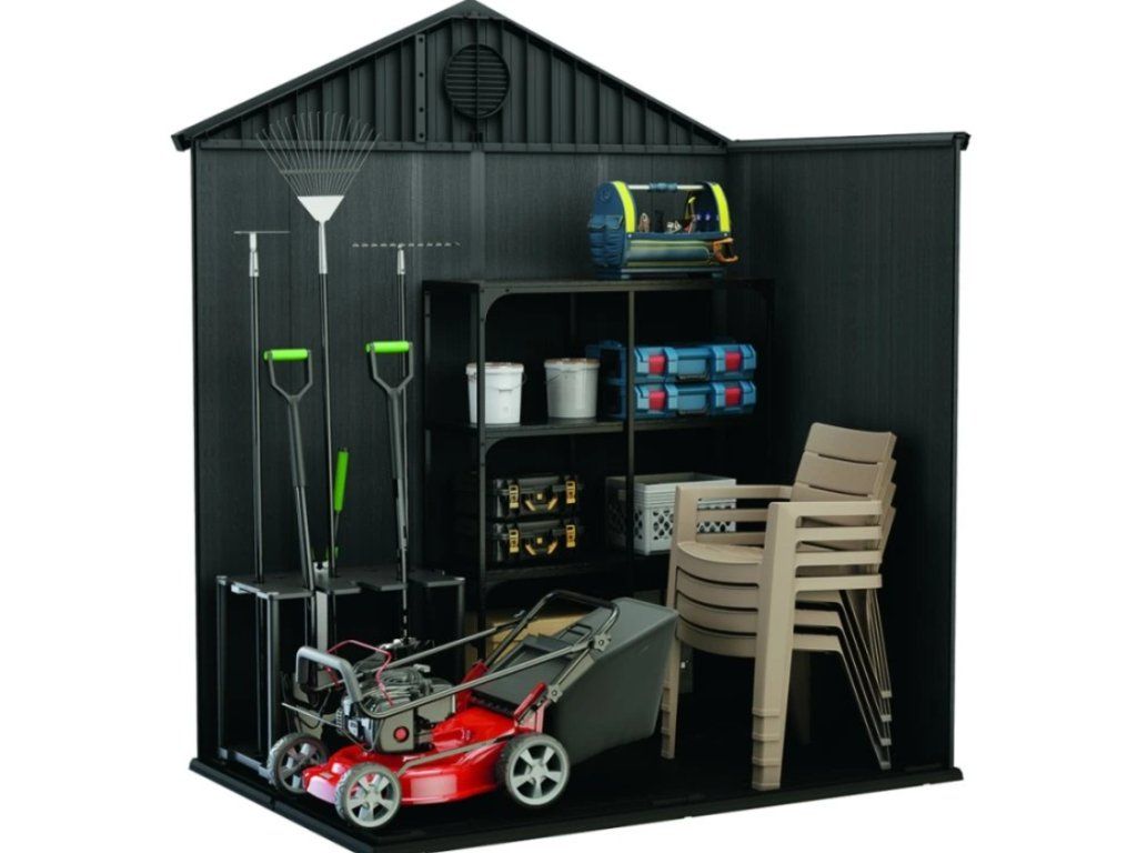 Darwin 6×4 nemá okna, ale větrací otvory v horní části stěn zajistí cirkulaci vzduchu a zabrání hromadění kondenzátu. Zahradní nářadí, chemie nebo zahradní technika zůstanou v suchu i po celém dešťovém týdnu.