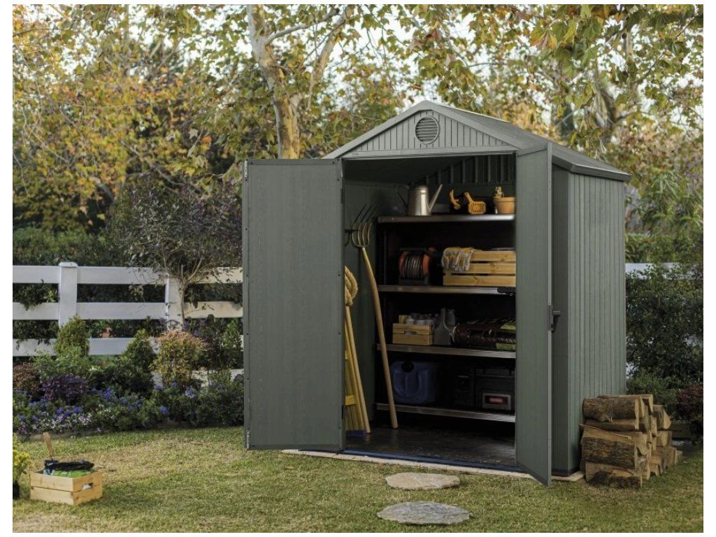 - Zahradní nářadí a chemie — lopaty, hrábě, motyky, hnojiva, substráty — vše pohromadě v suchu a zamčeno. Větrací otvory zajistí, že chemická přípravky nebudou přehřívat. Viz zahradní nářadí.