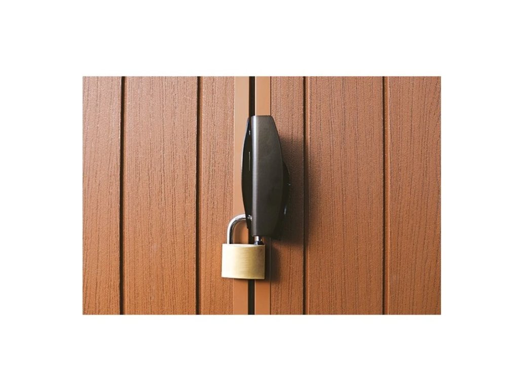 - Bezpečné uložení: Pevné dveře s ocelovou západkou umožňují uzamčení pomocí visacího zámku, což zajistí ochranu vašich věcí.