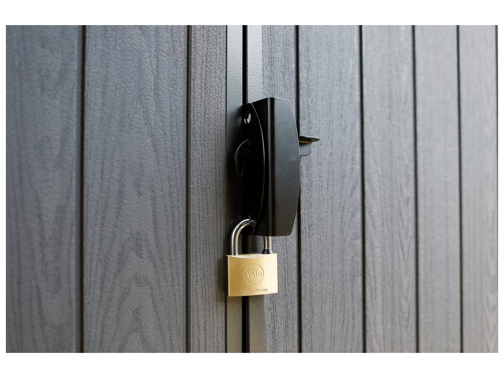 - přední dveře jsou opatřeny ocelovou západkou a zámkovou západkou - na kterou lze nasadit správně vybraný visací zámek