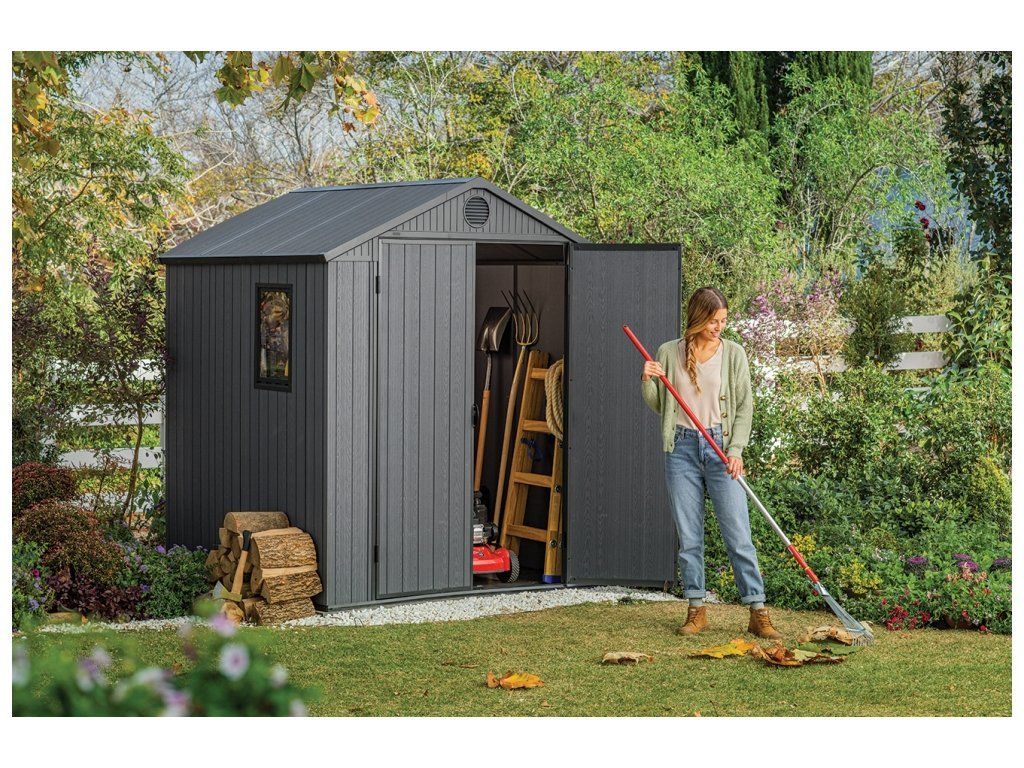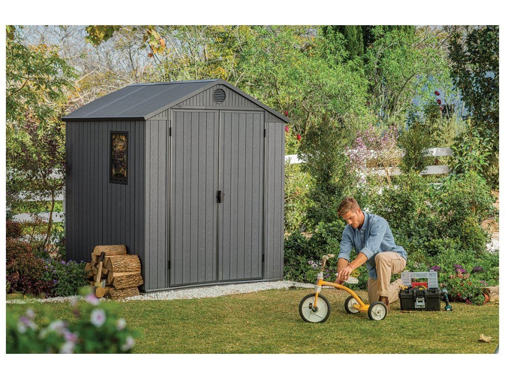 Zahradní domek Keter Darwin 6×6 šedý — kompaktní kůlna na nářadí, montáž za 2 hodiny