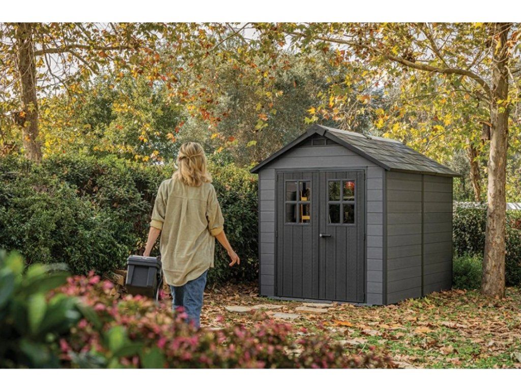 Zahradní domek Keter Newton 757 šedý — Newton 757 — EvoTech WPC, 4,4 m², střecha 150 kg/m²