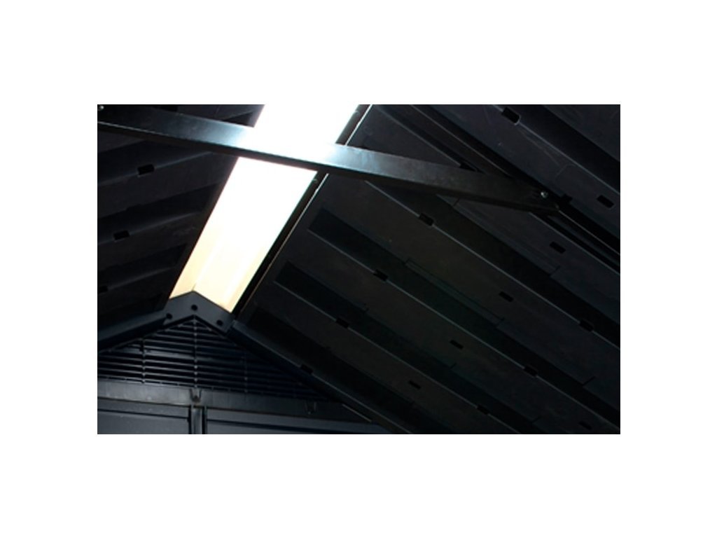 Domek NEWTON 759 je vyroben z jedinečného materiálu dřevo-plast a má robustní konstrukci s dvojitými stěnami, do kterých je možné vrtat. Je také vybaven pevnou designovou střechou, širokými dvojitými dveřmi a podlahou pro náročné použití. NEWTON kombinuje moderní a dřevěné prvky s vysokou odolností vůči povětrnostním vlivům.