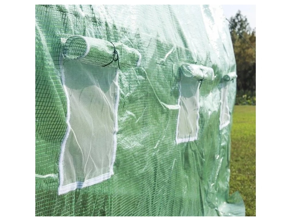 Odolná konstrukce z pozinkovaných ocelových trubek Ø 19 mm s tloušťkou stěny 0,6 mm zaručuje stabilitu a dlouhou životnost. Kvalitní PE fólie s gramáží 140 g/m² a UV filtrem UV4 chrání rostliny před škodlivým zářením i povětrnostními vlivy. Integrovaná výztužná PP síťka zvyšuje odolnost proti protržení.