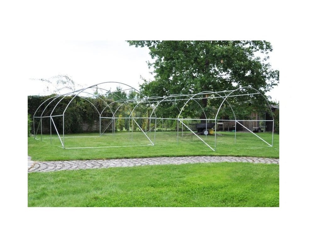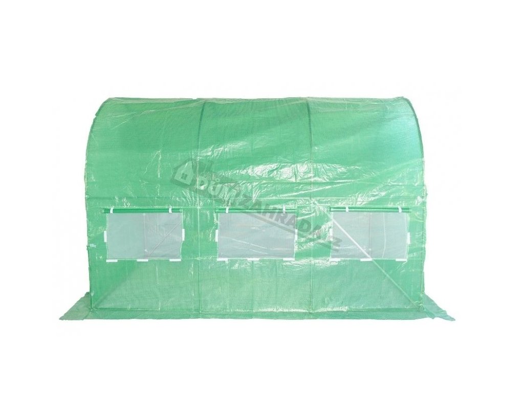 Základ tvoří odolná konstrukce z pozinkovaných ocelových trubek Ø 25 mm se silnou stěnou 0,7–0,9 mm, která odolá i horším povětrnostním podmínkám. Fólii tvoří polyethylen s gramáží 140 g/m², doplněný o integrovanou výztužnou PP síťku, která zvyšuje pevnost a prodlužuje životnost.