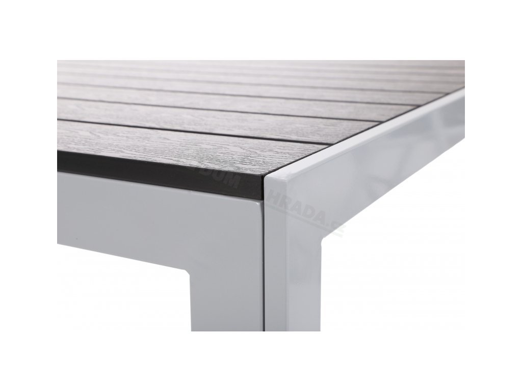 Rám a nohy stolu i židlí jsou vyrobeny z vysoce kvalitního hliníku s práškovým nátěrem. Desku stolu tvoří vodotěsné kompozitní desky polywood se vzhledem dřeva ( který se používá mimo jiné pro výrobu např.moderních systémů teras ).
