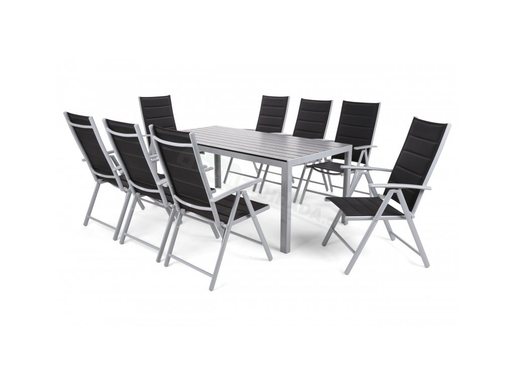 - komplet obsahuje 8 polohovacích křesel a velký obdélníkový stůl o délce 180 cm