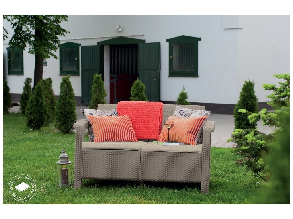 Zahradní pohovka Allibert Corfu Love Seat 128 x 70 x 79cm - cappucino / krémová