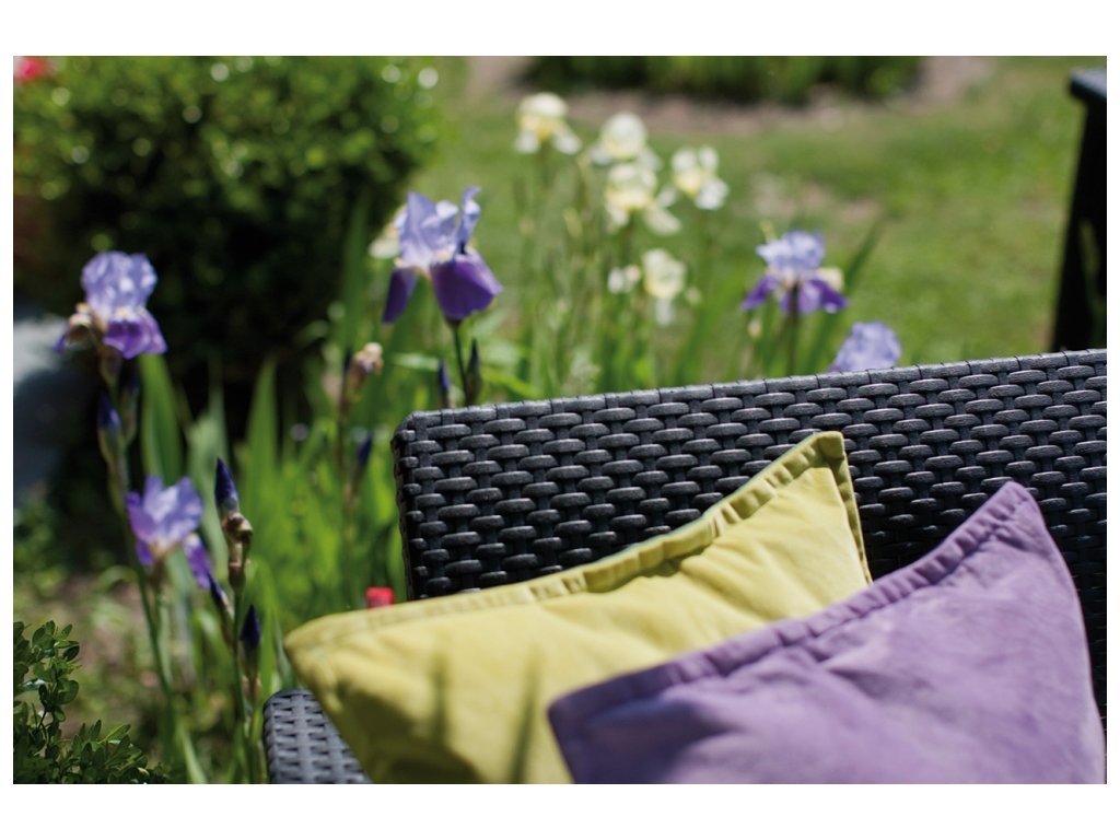 Zahradní sada Corfu II DUO je určena pro ty, kteří se chtějí na své zahradě, balkónu či terase pohodlně usadit. Křesla jsou vyrobena z plastu imitující strukturu přírodního ratanu, který je velmi odolný vůči povětrnostním podmínkám a nevyžaduje žádnou údržbu. K jeho čištění postačí jen voda nebo jemné čisticí prostředky. Polštáře se díky zipu dají snadno vyndat z povlaku, který lze prát.