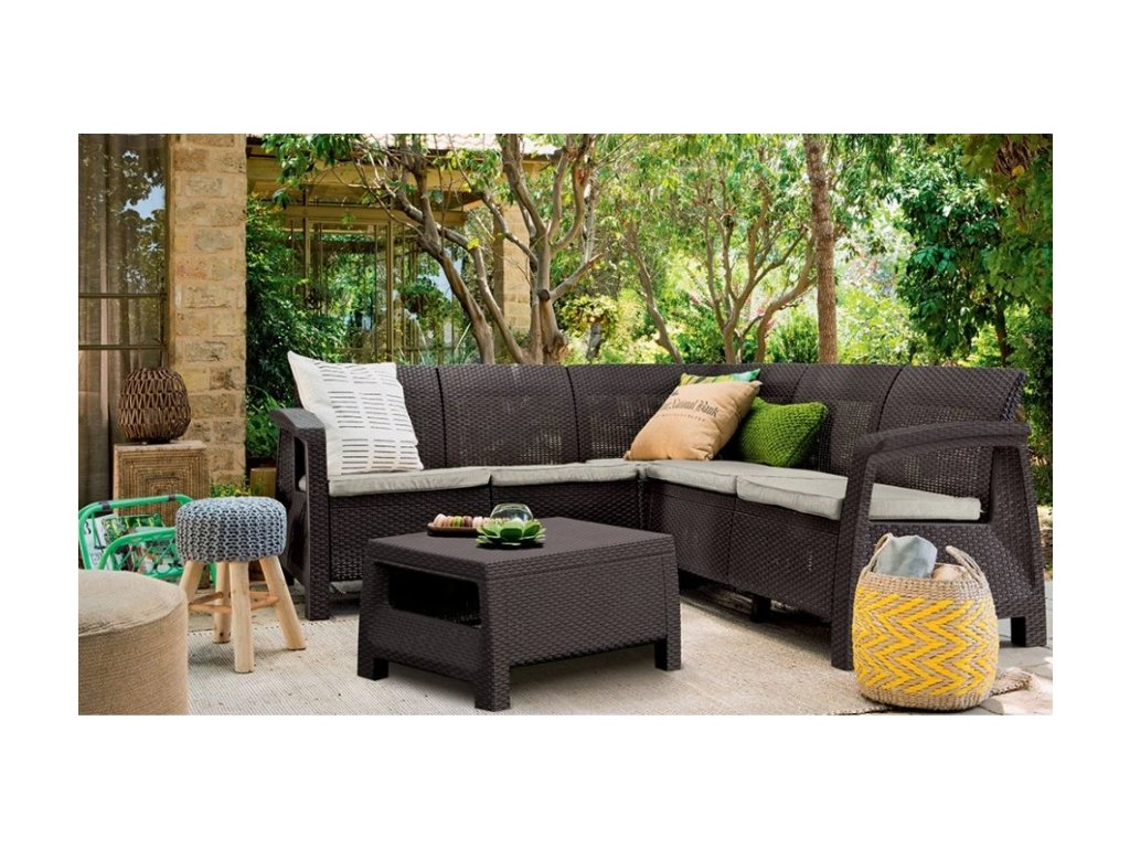 Dopřejte si luxusní relaxaci s elegantním zahradním setem Corfu Relax Brown od značky Keter/Allibert. Tento sofistikovaný rohový set v tmavě hnědém provedení v sobě spojuje moderní design, vysokou odolnost a maximální komfort. Díky vzhledu imitujícímu přírodní ratan dokonale zapadne do jakéhokoliv exteriéru i interiéru a vytvoří příjemné místo k odpočinku.