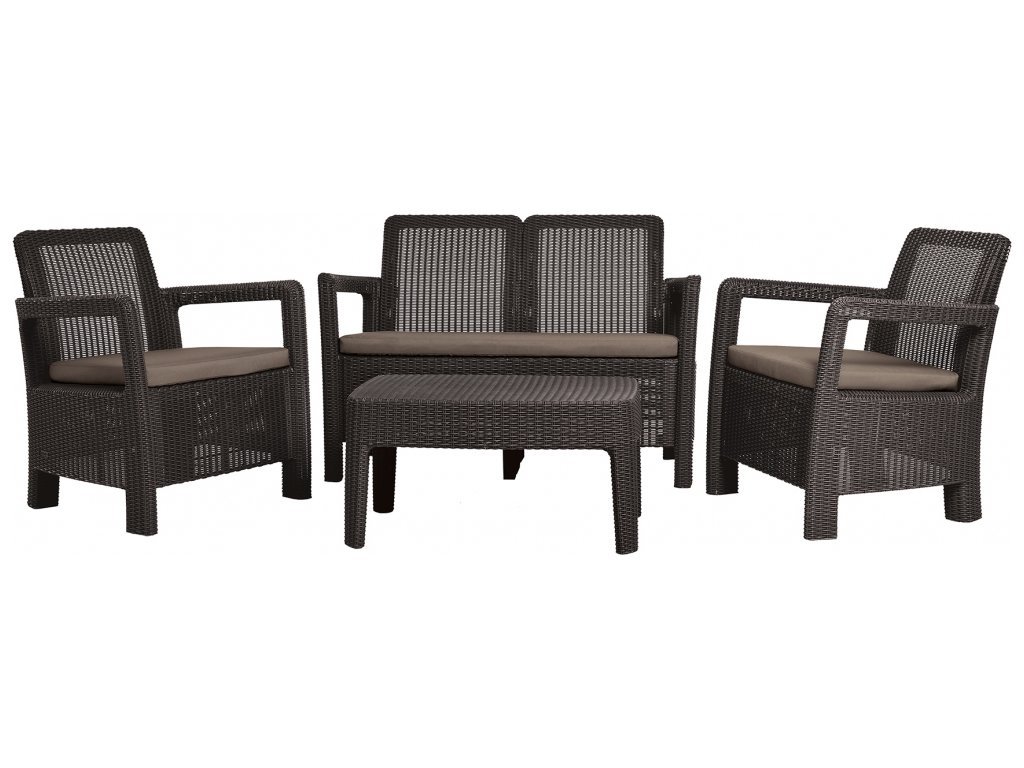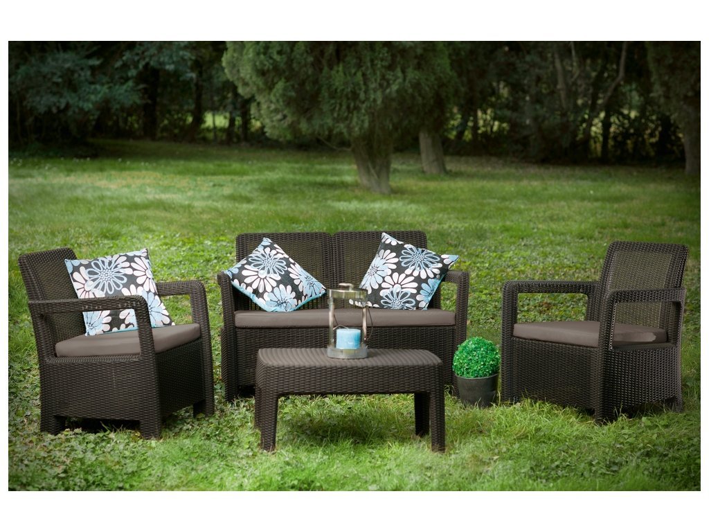 Zahradní set KETER TARIFA Lounge set v hnědé barvě je nábytkový set s jemně zaoblenou povrchovou texturou imitující přírodní ratan. Set se skládá ze dvou křesel, jedné dvoumístné pohovky (s pohodlnými podsedáky) a obdélníkového stolu. Tarifa Lounge set je tak ideální nábytek pro pořádání rodinného grilování nebo pro zahradní párty s přáteli. Nábytek se vyznačuje dlouhou trvanlivostí a odolností vůči nepříznivým povětrnostním podmínkám a UV záření, takže si po dlouhou dobu udrží svůj původní vzhled i tvar. Díky odolnému plastu, ze kterého je vyroben, nevyžaduje téměř žádnou údržbu a jeho montáž zvládne každý.