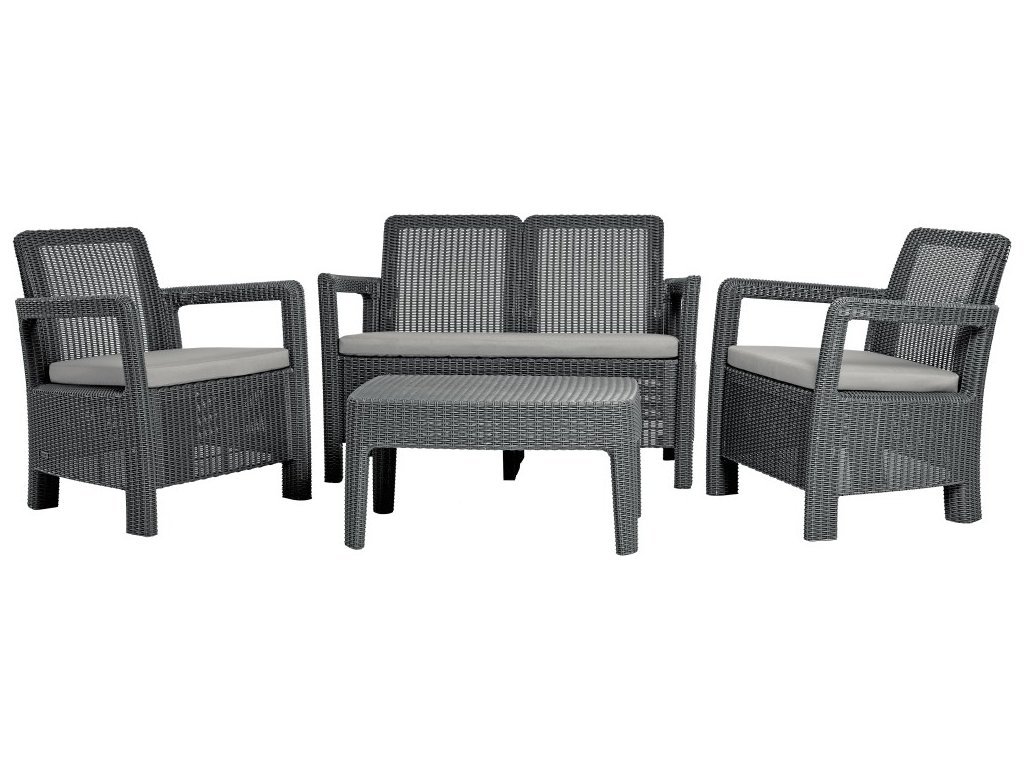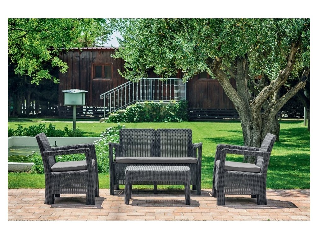 Zahradní set KETER TARIFA Lounge set v šedé barvě je nábytkový set s jemně zaoblenou povrchovou texturou imitující přírodní ratan. Set se skládá ze dvou křesel, jedné dvoumístné pohovky (s pohodlnými podsedáky) a obdélníkového stolu. Tarifa Lounge set je tak ideální nábytek pro pořádání rodinného grilování nebo pro zahradní párty s přáteli. Nábytek se vyznačuje dlouhou trvanlivostí a odolností vůči nepříznivým povětrnostním podmínkám a UV záření, takže si po dlouhou dobu udrží svůj původní vzhled i tvar. Díky odolnému plastu, ze kterého je vyroben, nevyžaduje téměř žádnou údržbu a jeho montáž zvládne každý.