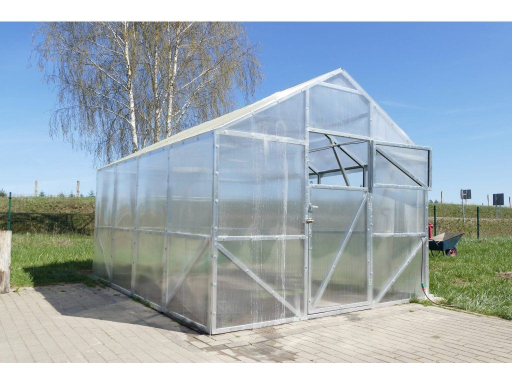 - Celoroční provoz — nosnost 180 kg/m² a sedlová střecha umožňují provoz bez obav i v zimě. Viz celá sekce skleníků.