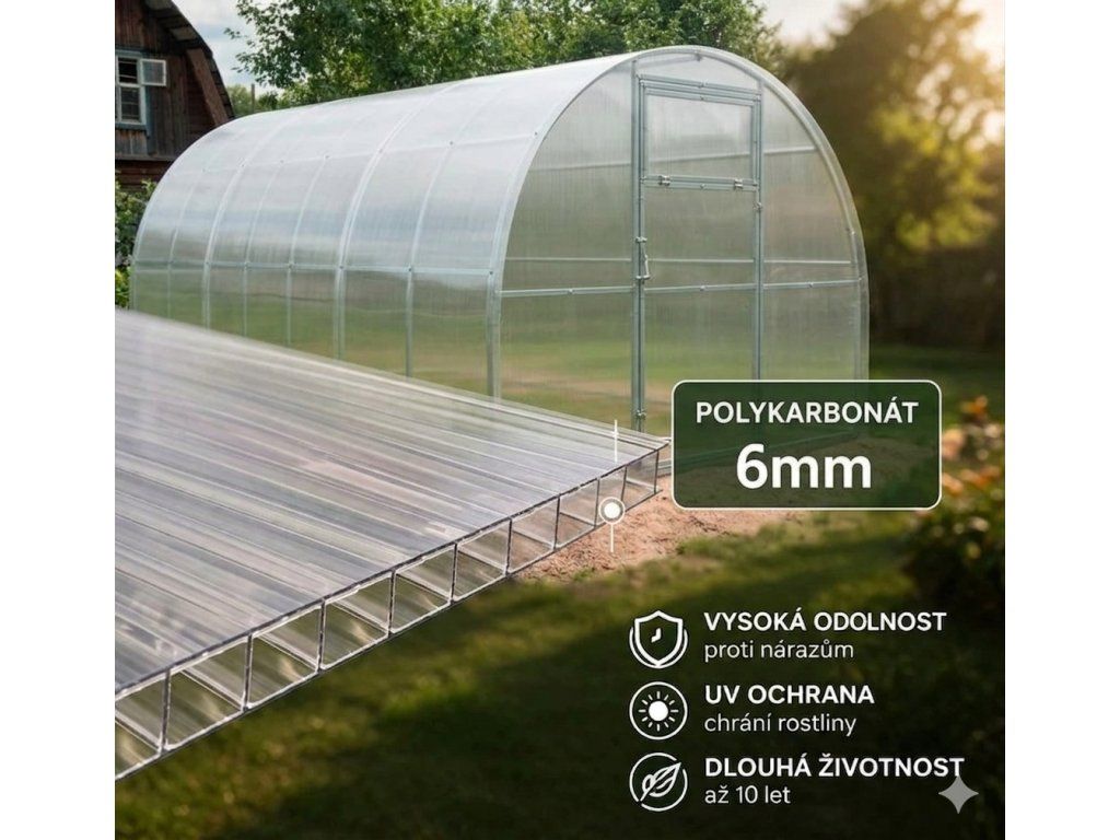 Celkově jeden z nejlepších obloukových skleníků v kategorii — galvanický zinek, předsvářená čela a certifikovaný polykarbonát tvoří solidní kombinaci za rozumnou cenu.