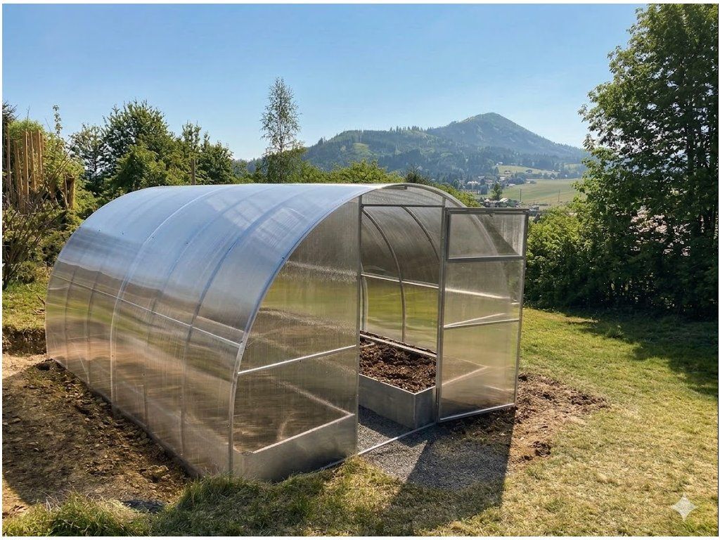 - Jarní předpěstování sazenic — 18 m² a výška 2 m nabídnou prostor pro tisíce sazenic. Výsadba o 4–6 týdnů dříve než venku. Viz celá sekce skleníků.