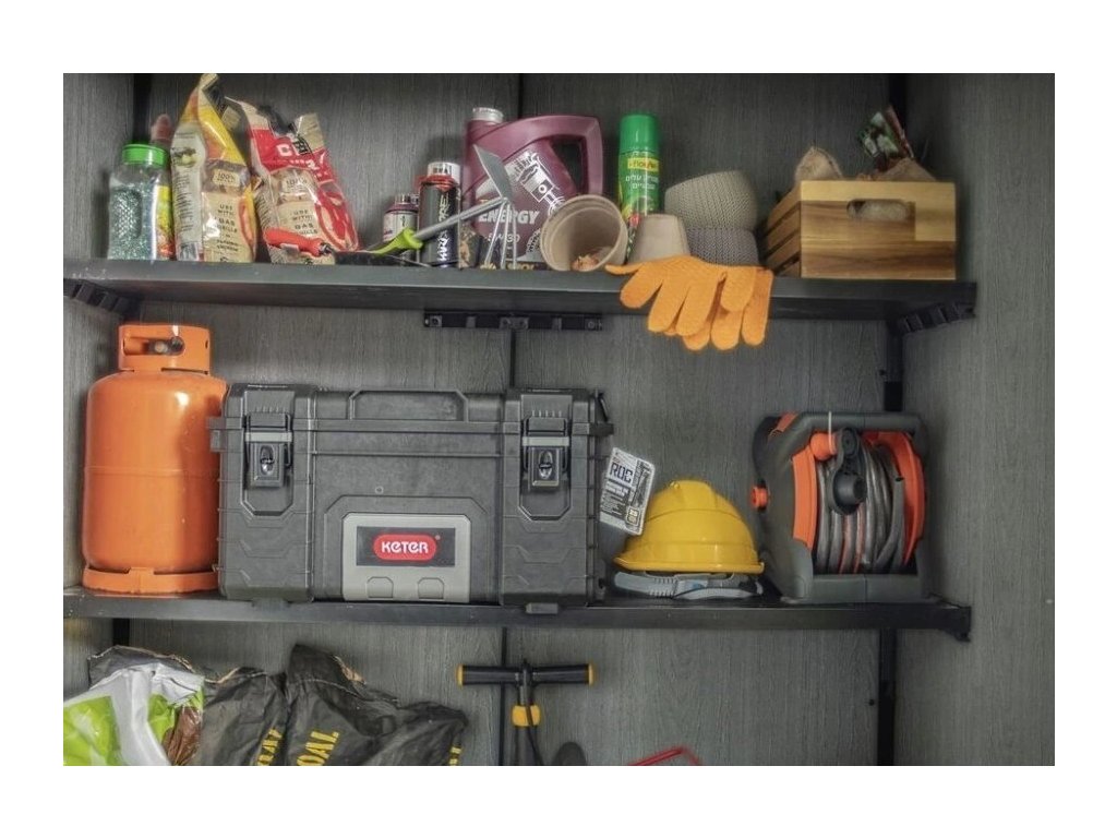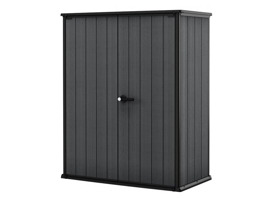 Zahradní skříň Keter Cortina Alto – 1400 l, tmavě šedá, s policemi a uzamykáním